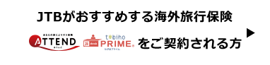 JTBでは、JTBグループの保険会社ジェイアイの海外旅行保険「ATTENDあてんど」もしくは「t@bihoプライム」をおすすめしています。ジェイアイの海外旅行保険をご契約されるお客様は、ご契約手続きにお進みください。